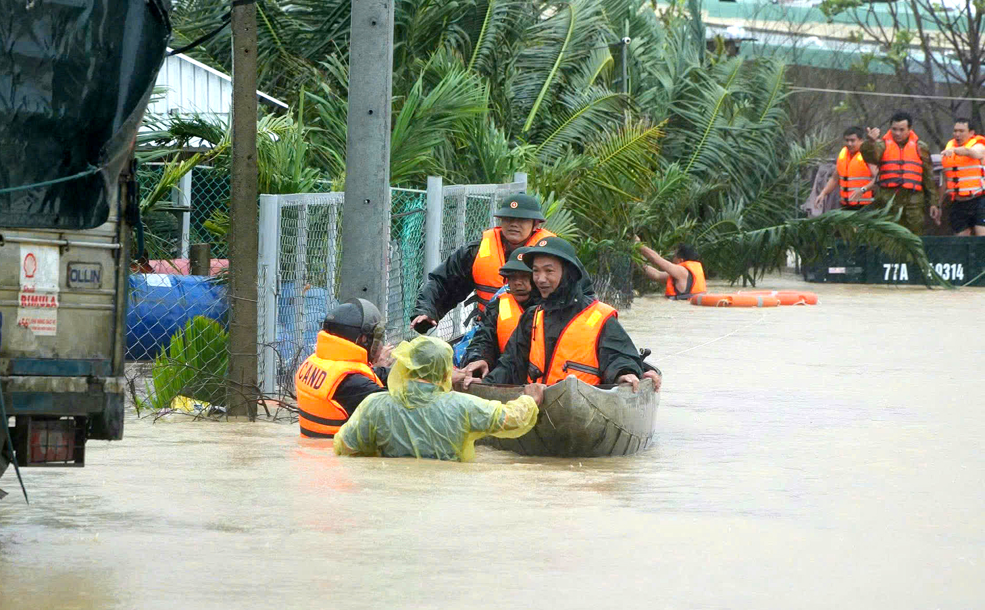 Trong cao điểm nước lụt, hàng ngàn người dân khắp nơi giơ tay kêu cứu. Bộ Quốc phòng, Quân khu 5, các lực lượng địa phương, công an tung hết lực lượng để ứng cứu nhưng thiệt hại mất mát vẫn quá lớn. Trước trận lũ lịch sử 50 năm qua, chiều 29-11 Thủ tướng Chính phủ Phạm Minh Chính đã lên trực thăng bay vào tâm lũ xã Hòa Thịnh.