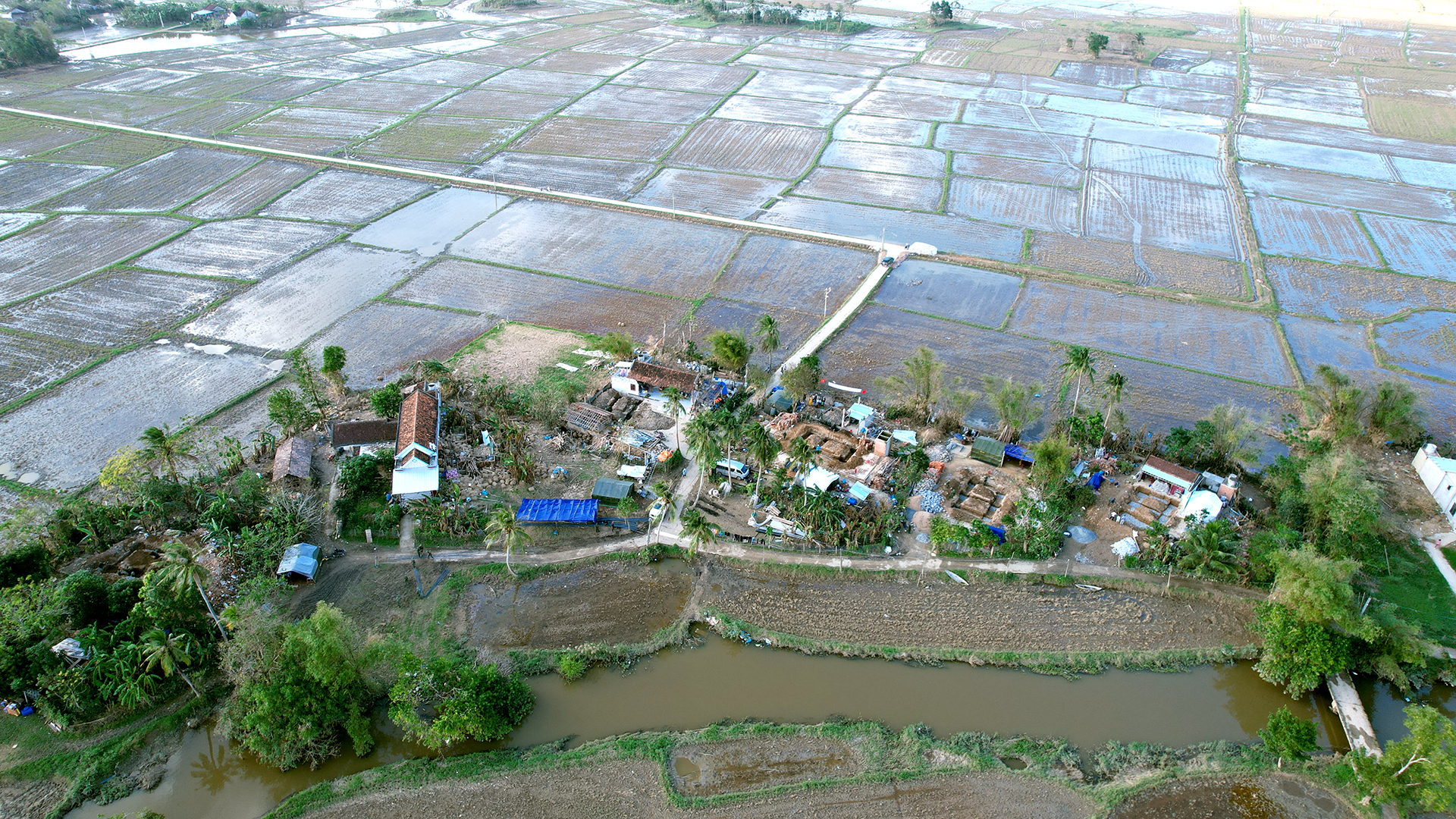 Những ngày đầu tháng 12, khi lũ rút đi, bùn chưa kịp khô, bước chân từng đoàn quân khắp nơi đổ về tái thiết vùng lũ của Chiến dịch Quang Trung rầm rập ở các xóm làng. Thôn Phú Hữu, xã Hòa Thịnh (Đắk Lắk) là tâm lũ nặng nề nhất.
