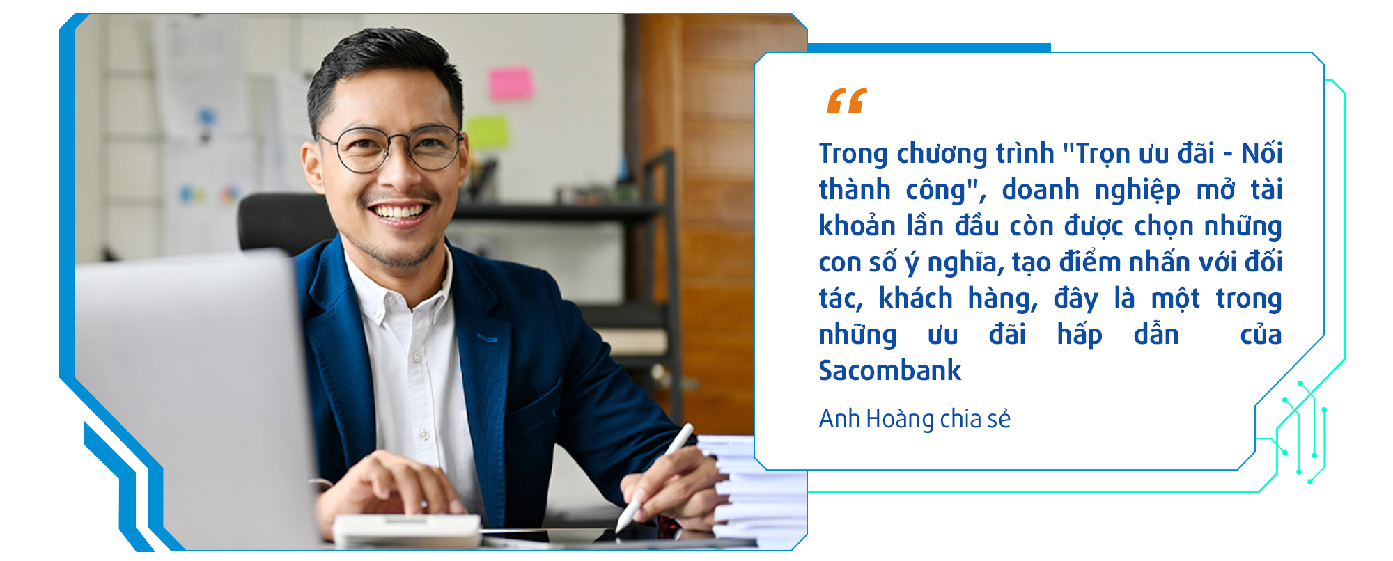 "Trước đây, khi quản lý trên sổ sách truyền thống, dù kinh doanh tốt nhưng tôi lại không thấy dòng tiền. Giờ đây, những vấn đề này đã được giải quyết nhờ vào tài khoản thanh toán doanh nghiệp tôi mở tại Sacombank. Tôi có thể thực hiện và quản lý các giao dịch mọi lúc, mọi nơi chỉ với một chiếc điện thoại thông qua eBanking của ngân hàng. Việc tra soát cũng rất dễ dàng, tôi không phải đau đầu vì hàng tá sổ sách như trước. Đối tác và khách hàng của công ty đều hài lòng vì quy trình được rút gọn, tiết kiệm nhiều thời gian, chi phí và trải nghiệm mua sắm cũng mượt mà hơn. Đặc biệt, ngân hàng đang miễn và giảm hàng loạt phí khi sử dụng tài khoản thanh toán từ nay đến cuối năm, doanh nghiệp của tôi càng thêm lời", anh Hoàng chia sẻ.