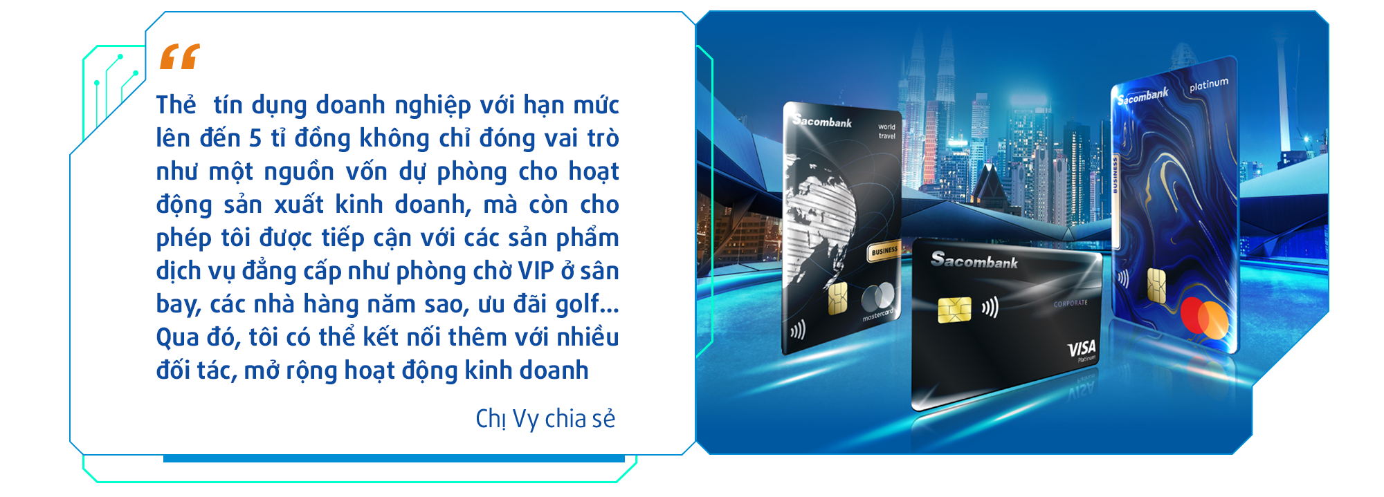 Chị Nguyễn Yến Vy - tổng giám đốc một công ty vận tải ở TP.HCM và là một khách hàng lâu năm của Sacombank - cũng cho biết bên cạnh các dịch vụ thanh toán hiện đại hàng đầu, chị còn được tiếp cận với các loại thẻ tín dụng doanh nghiệp đa dạng và nhiều ưu đãi.