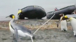 Chim cánh cụt đứng ngắm cảnh bị đồng bọn xô ngã