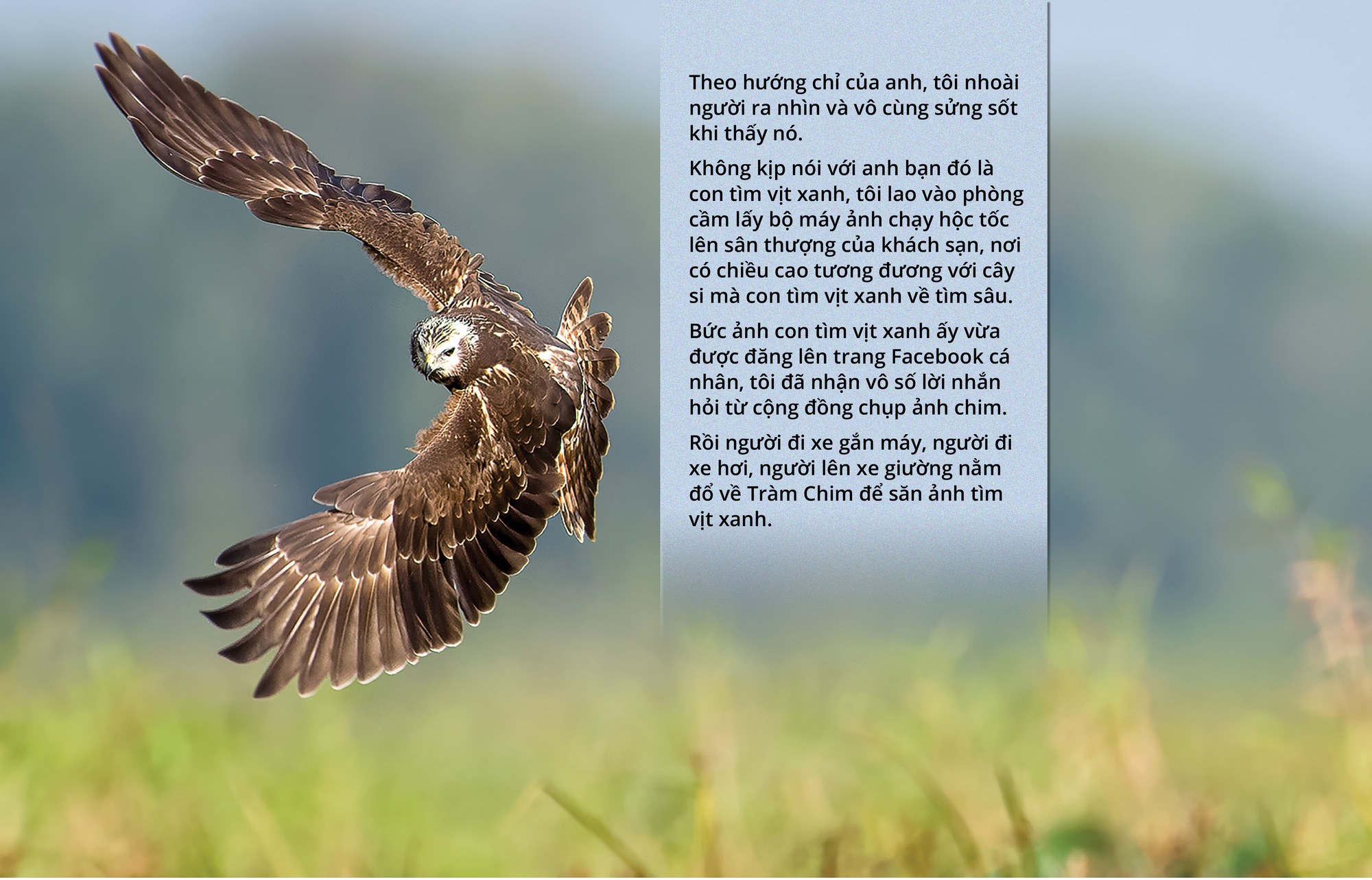Nhân câu chuyện lần đầu thấy và chụp được ảnh chim tìm vịt xanh mới thấy chim không chỉ là những sinh vật đóng vai trò quan trọng trong hệ sinh thái, giúp diệt trừ các sinh vật gây hại trong nông nghiệp như sâu, chuột, ốc bươu vàng… mà còn như sứ giả du lịch.