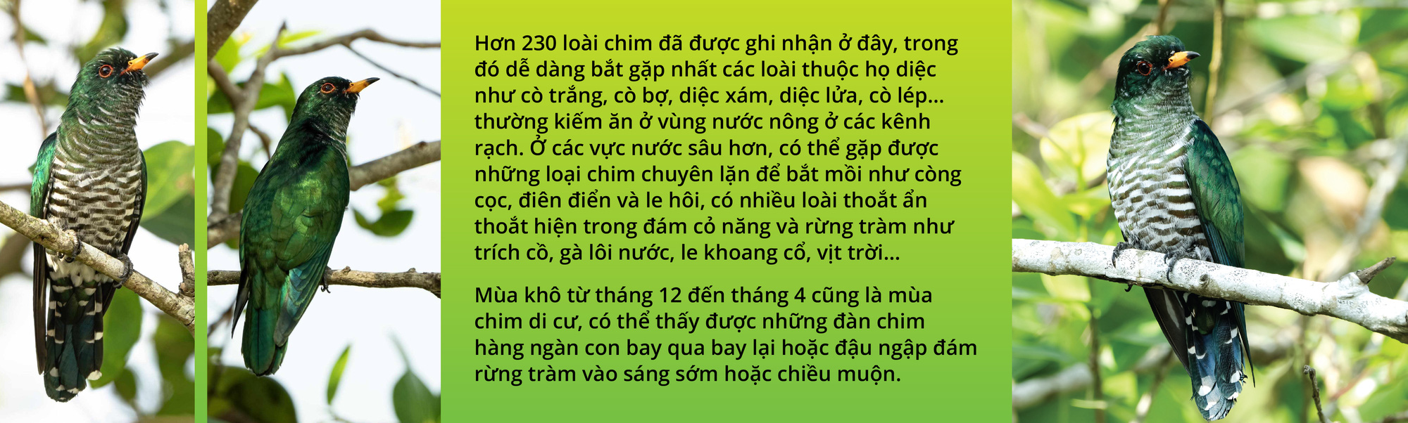 Vì vậy, những ngày qua du khách được chiêm ngưỡng cảnh đẹp tuyệt diệu nơi đây, với những đàn chim bay ngợp trời - một tín hiệu tích cực của môi trường sinh thái phục hồi, một nơi "đất lành chim đậu".