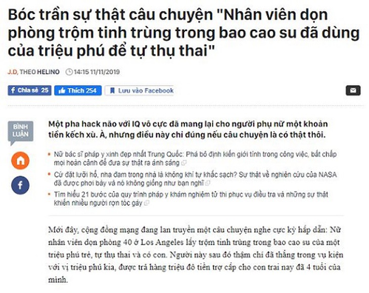 Cách đây chừng một tháng, cũng có một tin “thất thiệt” tương tự, nay đã được giải thiêng: Nữ nhân viên dọn phòng 40 ở Los Angeles lấy trộm tinh trùng trong bao cao su của một triệu phú trẻ, tự thụ thai và có con. Người này sau đó thắng trong vụ kiện với vị triệu phú, được trả hàng triệu đô tiền trợ cấp cho con trai nay đã 4 tuổi của mình.