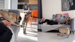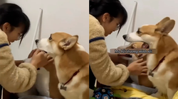 Khoảnh khắc chú chó con đùa giỡn khi theo chân bà ra vườn hái rau khiến nhiều người xem thích thú.
