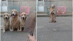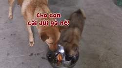 Chó mẹ lấy lồng bàn đậy tô thịt khi con quậy phá đòi ăn