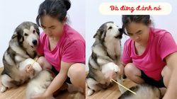 Thấy con quậy phá đòi ăn, chó mẹ liền đi lấy lồng bàn đậy tô thịt khiến nhiều người xem trầm trồ vì quá khôn.