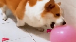 Thấy bà chủ muốn phạt con, chó mẹ liền năn nỉ xin tha.