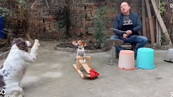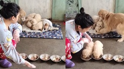 'Yêu quá, nhìn cách chó mẹ bảo vệ con dễ thương chưa kìa', một người xem bình luận.