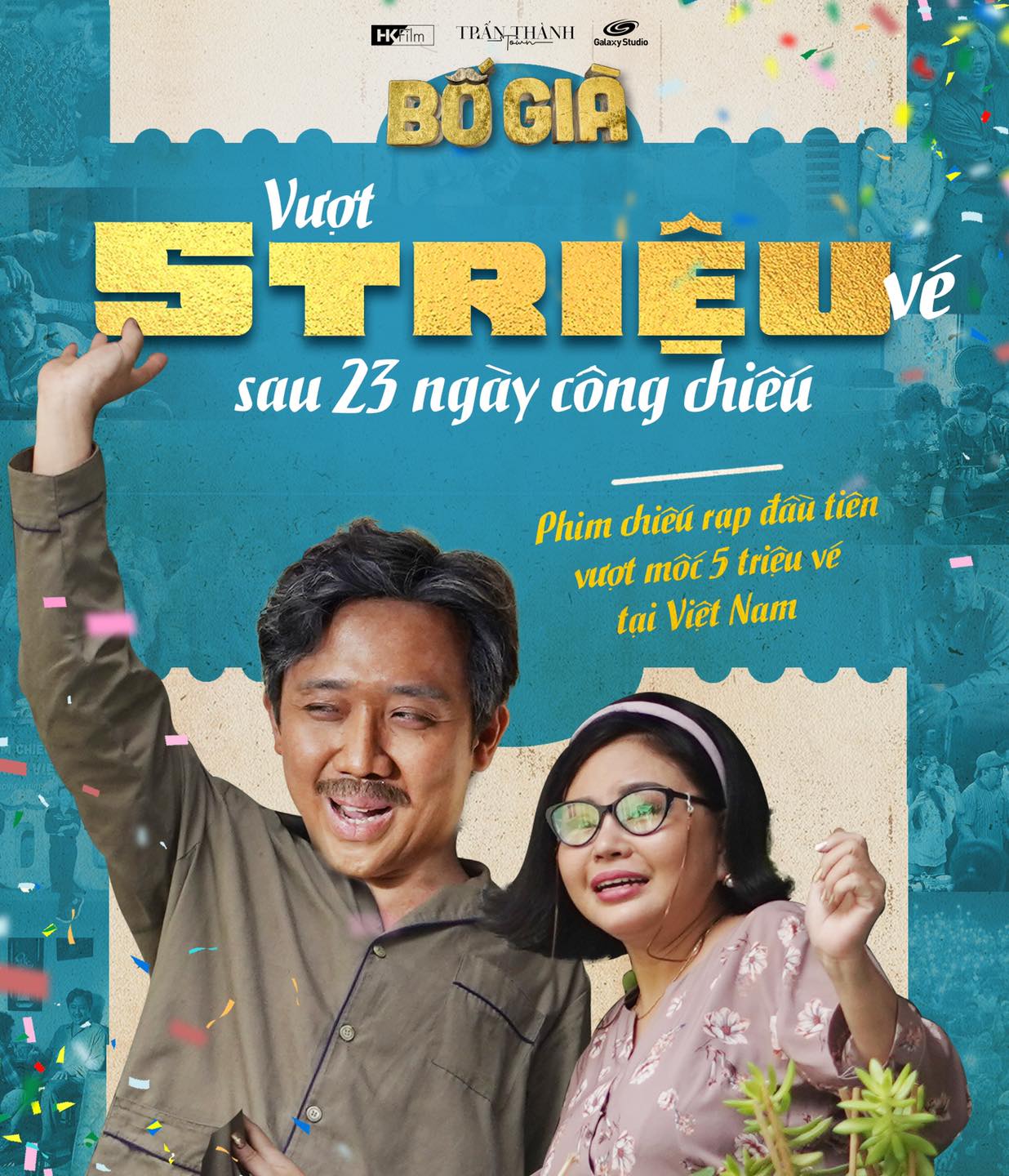 Giờ đây, Trấn Thành đã có câu trả lời. Sau hơn ba tuần chiếu rạp, Bố già đã xác lập kỷ lục mới với con số năm triệu lượt vé bán ra. Đã có hơn năm triệu khán giả đến rạp chiếu phim, cùng khóc cùng cười với cha con ông Ba Sang, với gia đình Giàu – Sang – Phú – Quý.