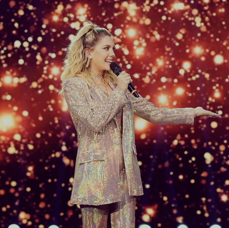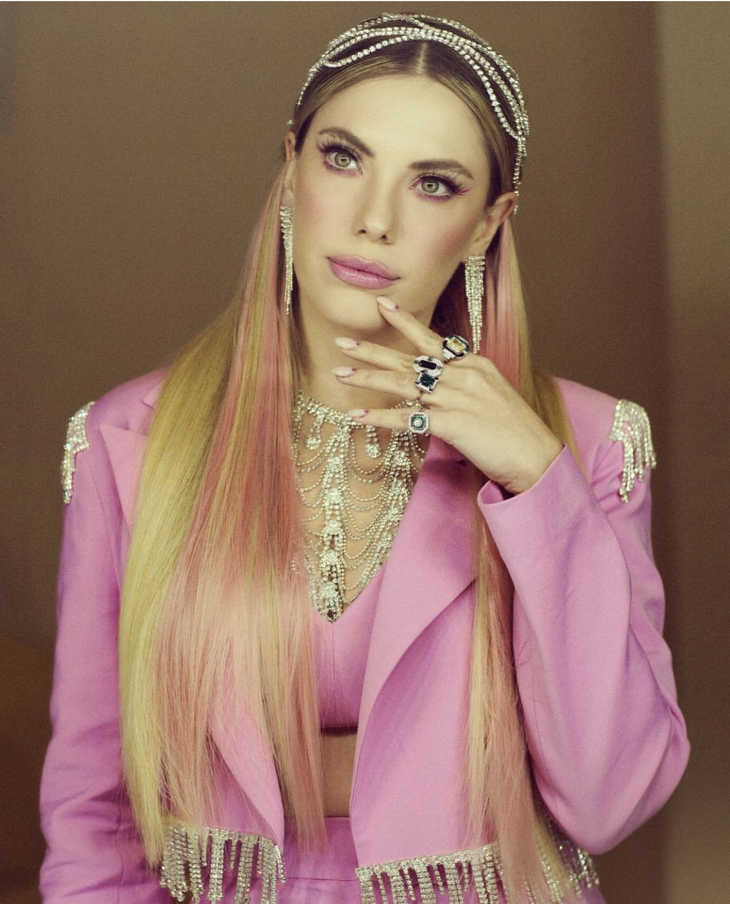 Chọn cho mình tone tím chủ đạo, Eda Ece từng khiến cộng đồng mạng Thổ Nhĩ Kỳ “rúng động” vì sự thay đổi quá táo bạo này. Từ chiếc đầm kim sa, mái tóc, màu mắt cho tới bộ nails, cô nàng đều chọn tone tím bóng nổi bật. Không chỉ thế, để nhấn nhá thêm cho ngoại hình của mình, nữ diễn viên còn mix thêm chiếc vương miện đá “siêu to khổng lồ” và những chiếc nhẫn cũng to không kém.