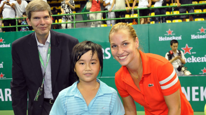 TTCT - Cho con chơi thể thao để khỏe khoắn là mong muốn của nhiều bậc phụ huynh. Nhưng khi con họ đã chơi tốt, thậm chí có thành tích, thì vấn đề đặt ra khác đi và buộc họ phải có sự lựa chọn. Phóng to Bảo Linh giao lưu với ngôi sao Cibulkova tại giải biểu diễn Heineken Star tháng 9-2012 ở TP.HCM - Ảnh gia đình cung cấp Phan Bảo Linh, hạng nhì Giải quần vợt U-11 toàn quốc năm 2012, hiện đang theo học Trường quốc tế Á Châu. Được ông bố mê quần vợt cho ra sân từ năm lên 7, nay Bảo Linh đã có thể tranh các giải thành phố và quốc gia ở lứa tuổi của mình dù em không gia nhập tuyến năng khiếu nào của TP.HCM. Học vấn vẫn ưu tiên “Vào năng khiếu thì được tập luyện miễn phí, nhưng phải chấp nhận thay đổi chuyện học hoặc chuyển đổi thời gian học rất bất tiện, trong khi tôi vẫn muốn con gái đầu lòng có nền tảng học vấn tốt” - anh Phan Trí Cường giải thích. Đưa Bảo Linh đến tập quần vợt tại Nhà văn hóa Thanh niên, anh Cường chỉ muốn con mình chơi thể thao để khỏe và năng động. Khi HLV Trần Trọng Anh Tú nhận xét Bảo Linh có những tố chất tốt, anh Cường bắt đầu tìm hiểu các điều kiện để phát triển khả năng của con mình. Qua tư vấn của các HLV, trong đó có HLV trưởng Trương Hoàng Vũ của quần vợt Hà Nội, anh Cường quyết định đầu tư cho con chơi thể thao một cách tự nhiên theo kiểu “vừa học vừa chơi”. Từ một năm rưỡi nay, sau giờ học Bảo Linh tập ngoài giờ ở CLB Phú Thọ với học phí 2,5 triệu đồng/tháng. Ngoài ra, em còn theo cha đến sân khác vào các ngày chẵn. Tuy nhiên, anh Cường vẫn muốn con tiếp tục học tốt, xem quần vợt là một lựa chọn thể thao như nhiều người và phần thưởng nếu có sẽ là đi tập huấn hai tuần ở Thái Lan để tăng niềm hứng khởi. “Không tính vé máy bay, một tuần vừa học vừa chơi ở Chiangmai tốn khoảng 750 USD” - anh Cường cho biết. Mức phí này chưa phải là quá cao so với khả năng của không ít phụ huynh, nhưng công sức họ bỏ ra cho con chơi quần vợt và tham dự các giải đấu là không thể tính được, với hi vọng thành tích thi đấu có thể mở ra cánh cửa học bổng du học mà không ít tay vợt trẻ nữ đã tận dụng. Phóng to Vinh Quang thi đấu ở Giải U-14 châu Á đầu năm 2013 tại CLB Phú Thọ - Ảnh: Tấn Phúc Chỉ vào năng khiếu nếu… Đam mê quần vợt thường có gen gia đình như trường hợp anh Nguyễn Mậu Vinh, phụ huynh của Nguyễn Mậu Vinh Quang. Là tay vợt phong trào thuộc hạng khá, anh Vinh tạo điều kiện cho con trai út chơi thể thao từ nhỏ: bơi lội và quần vợt. Cầm vợt từ năm 11 tuổi, Vinh Quang chưa mê lắm môn thể thao này. Chỉ đến “cú hích tự ái” từ Giải quần vợt toàn thành 2012 (thua Bảo Hoàng) mà Vinh Quang mới say mê lao vào tập luyện. Cũng trong năm đó, Vinh Quang thua ở tất cả các giải, “thậm chí thua trận rồi mà không biết vì chưa quen đếm tỉ số” - anh Vinh kể. Kể từ năm 2013, thành tích dồn dập đến với cậu bé 14 tuổi cao 1,82m và nặng 72kg này, “một thể hình quá lý tưởng ở độ tuổi vẫn còn phát triển, đặc biệt là phần vai rất cơ bắp của em” - theo đánh giá của HLV Đoàn Lê Minh. Vinh Quang lần lượt đăng quang các giải U-14 toàn thành, toàn quốc, rồi năng khiếu toàn quốc và mới đây là giải các tay vợt thanh thiếu niên xuất sắc toàn quốc tại Huế. “Tôi thấy con mình tiến bộ nhanh chỉ sau một năm tập luyện tập trung mà chuyện học không bị ảnh hưởng nên chấp thuận cho con theo đuổi đam mê của mình” - anh Vinh nhấn mạnh trong lúc đang quan sát con đánh trả bóng đều với Đỗ Minh Quân, nhà vô địch quốc gia vừa có chuyến du học từ Mỹ về, trên sân tập lúc 17g thứ hai 12-8. “Đây là ngày đầu tiên cháu được tập với Quân nên phấn khích lắm. Đó cũng là nhờ có thỏa thuận mới đây giữa chúng tôi và Trung tâm Huấn luyện và thi đấu TP.HCM (tên gọi Trường Nghiệp vụ thể thao trước đây)” - anh nói thêm. Năm ngoái, Vinh Quang đã được đặt vấn đề gia nhập tuyến năng khiếu TP.HCM để có điều kiện tập luyện tốt hơn nhưng gia đình không đồng ý vì vẫn ưu tiên chuyện học. Theo thỏa thuận sắp được ký, Vinh Quang hưởng chế độ năng khiếu với thời gian tập từ 16g-19g. Khoảng thời gian này rất thích hợp vì em đang học lớp 9 Trường Quốc tế Mỹ từ 8g-15g, trường và nhà rất gần sân tập, trong bán kính chỉ vài kilômet nên đi lại rất thuận tiện. “Quần vợt còn là môn chơi bằng cái đầu. Nếu không học tốt thì chẳng làm được gì cả”. Lời khuyên của một HLV người Sri Lanka trong chuyến du đấu do Liên đoàn Quần vợt quốc tế tổ chức hồi đầu năm nay (VN có bốn tay vợt nam và nữ tham gia, trong đó có Vinh Quang) được anh Vinh ghi nhớ. “Tôi ủng hộ con chơi quần vợt đến 30 tuổi nhưng phải học hành tốt đã. Cháu đã chọn ngành công nghệ thông tin” - anh khẳng định. Tags: Quần vợtNăng khiếuPhan Bảo LinhGiải quần vợt U11 toàn quốc năm 2012