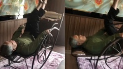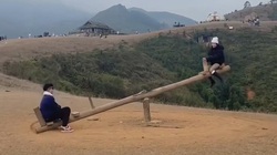 'Bữa nay đi công viên hữu duyên gặp được thứ dữ, rủ chơi bập bênh mà nó lạ lắm', tác giả tâm sự khi chia sẻ video.