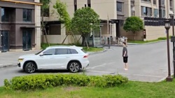 Người chồng phóng xe máy đi một cách hồn nhiên mà không hay biết vợ chưa ngồi lên, mãi 2 phút sau phát hiện ra thì mới quay lại đón.
