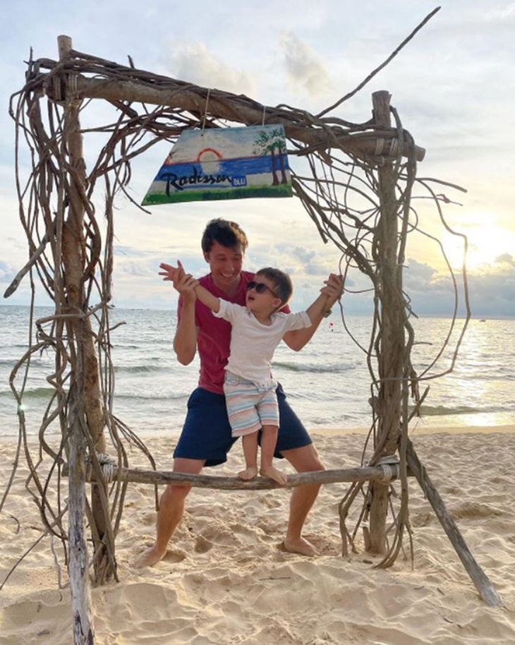 Trên trang cá nhân, Jack Cole cũng check in du lịch tại Phú Quốc với bức ảnh vui đùa cùng con trai. Điều này cho thấy Jack vẫn giữ mối quan hệ tốt với vợ cũ và gia đình Hoàng Oanh sau hôn nhân đổ vỡ. Cách hành xử văn minh này khiến nhiều người ngưỡng mộ.