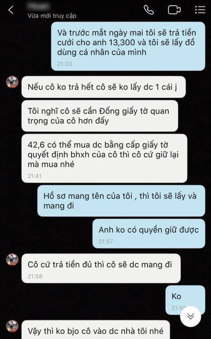 Màn chia tay đòi quà hi hữu này diễn ra tại huyện Kiến Xương, tỉnh Thái Bình. Người vợ không chỉ đăng tải lên mạng xã hội "biên bản bàn giao" mà những tin nhắn cũ liên quan đến chuyện trao đổi tiền nong để giải quyết ly hôn giữa hai người cũng vô cùng căng thẳng.