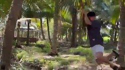 Chồng lấy điện thoại ra quay khi thấy vợ trượt chân ngã dập mông