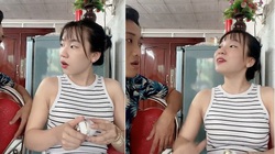Người chồng liên tục làm trò trêu chọc khi thấy vợ ăn uống khó khăn vì phun môi bị sưng tấy.