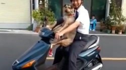 Cách bác bảo vệ vui đùa với chú chó khiến nhiều người xem thích thú.