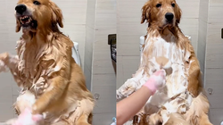 Đi chợ mua rau ngồi hóng chuyện, chú chó bị ông chủ mắng khiến nhiều người xem phì cười.