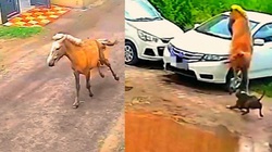 Chú chó bị xích chán không buồn nói khi bị đồng bọn lêu lêu