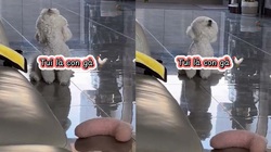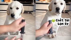 Chú chó buồn ngủ ríu mắt khi sen bắt ngồi nhìn trang điểm