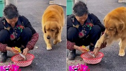 Chú chó đến động viên khi thấy cô chủ ngồi khóc