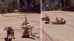 Chú chó hiểu chuyện mở lồng bàn giúp heo có đồ ăn