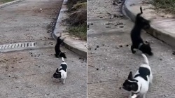 Chú chó kéo xe 4 bánh chạy đến giải cứu bạn thân