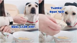 Thấy sen ăn mì có gia vị, chú chó một hai đòi ăn giống chủ mới chịu.
