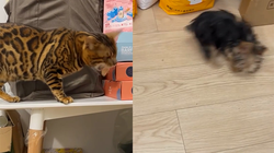Sau khi thấy ông chủ về, chú chó liền hổ báo vì bị cô chủ dọa bán.