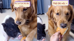 Chú chó lấy tô đựng cơm nhờ cô chủ rửa