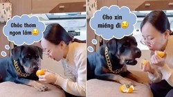 'Ông ơi ông à, hãy rủ lòng thương cho con miếng thịt, sáng giờ chưa ăn gì đói xỉu ông à!', chú chó said.