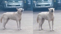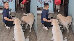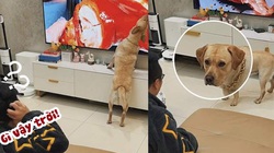 Chú chó ngồi trước micro hát vũ điệu Làng lá cho cô chủ nhảy, khiến nhiều người xem trầm trồ.