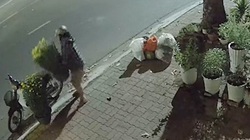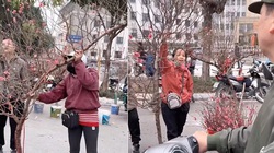Chú chó ngồi phụ ông chủ bán hoa Tết