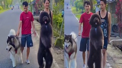 Chú chó nhảy hai chân mừng rỡ khi chủ về