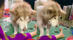 Thấy cô chủ vác đồ nặng, chú chó liền chạy đến phụ giúp một tay khiến nhiều người xem thích thú.