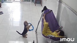 Dù đã được sen cho tắm nước ấm nhưng chú chó vẫn rét run bần bật vì trời lạnh mùa đông.