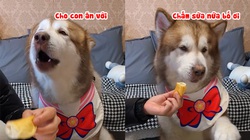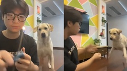 'Xoa đầu, vuốt ve vậy mà không cho cây xúc xích gì à, làm người ta đợi cả buổi', chú chó said.