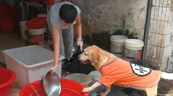 Chú chó thả cá lại xuống ao, không cho ông chủ sát sinh