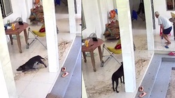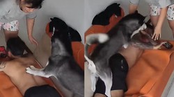 Chú chó thưởng thức ngon lành mâm cơm gia chủ vừa dọn lên