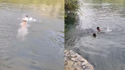 Chú chó trổ tài bắn bong bóng 'bách phát bách trúng' khiến nhiều người xem trầm trồ.