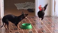 Thấy chó dữ xông tới tấn công cậu chủ, chú chó liền chạy đến bảo vệ kịp thời.
