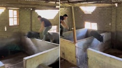 Đang ngồi xem điện thoại, chú lợn bị cậu chủ nhắc nhở 'thức khuya không tốt cho sức khỏe' nên liền đứng dậy bật quạt rồi tắt điện đi ngủ.