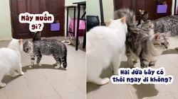 'Đang trình diễn đi dây thăng bằng thì gặp phải thằng 'báo thủ'! Cay thế cơ chứ!', mèo said.