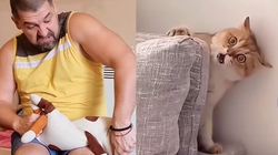 'Mặt hung dữ là như thế này nè sen', mèo said.