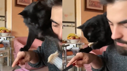Chú mèo lém lỉnh chốt cửa trong không cho chủ vào