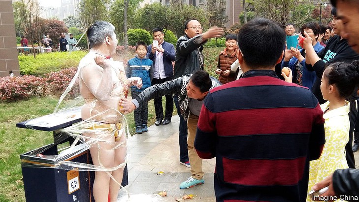 Náo hôn trở thành nỗi ám ảnh của không ít cặp đôi Trung Quốc.Cách đây 1 tháng, sự việc diễn ra tại Quận Tân Tân (thành phố Thành Đô, Trung Quốc) đã khiến dư luận bất bình khi chú rể bị bạn bè ném trứng và bột vào người. Những người bạn còn "chu đáo" đến nỗi thuê hẳn một xe xịt nước vệ sinh giá 600 tệ (hơn 2 triệu đồng) và gửi phong bao lì xì cho công nhân dọn dẹp "chiến tích" để lại.