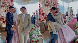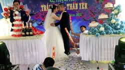 'Mọi người đừng cười nữa! Chỉ là em vui quá khi cưới được vợ thôi', chú rể said.