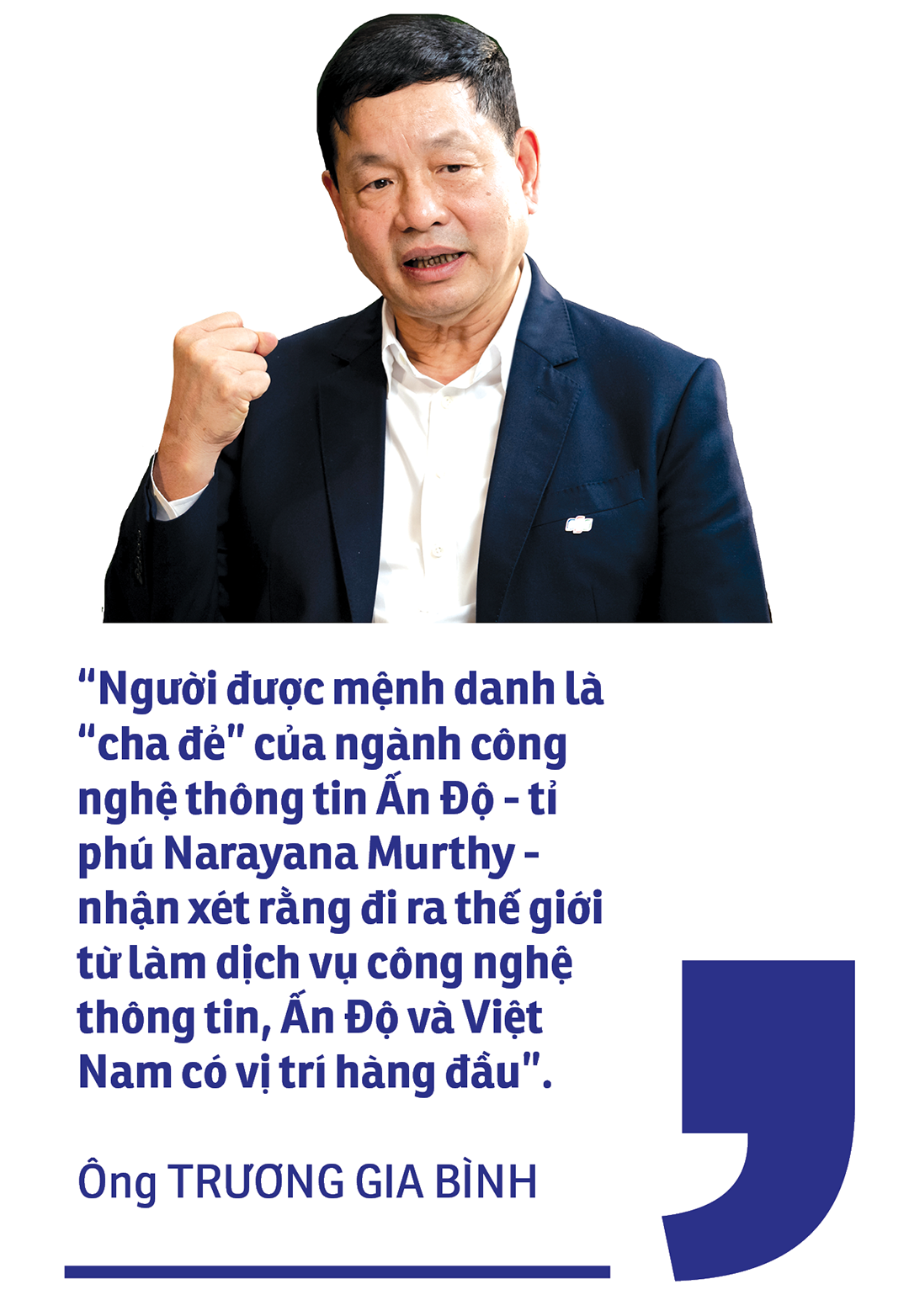 Nhưng tôi giật mình khi nghe người được mệnh danh là "cha đẻ" của ngành công nghệ thông tin (CNTT) Ấn Độ, tỉ phú Narayana Murthy - nhà sáng lập Công ty Infosys, hiện là một trong những doanh nghiệp công nghệ hàng đầu Ấn Độ - nhận xét rằng đi ra thế giới từ làm dịch vụ CNTT, Ấn Độ và Việt Nam có vị trí hàng đầu trên bản đồ dịch vụ CNTT của thế giới. Đấy là điều vĩ đại vì Việt Nam chúng ta được đánh giá rất cao.